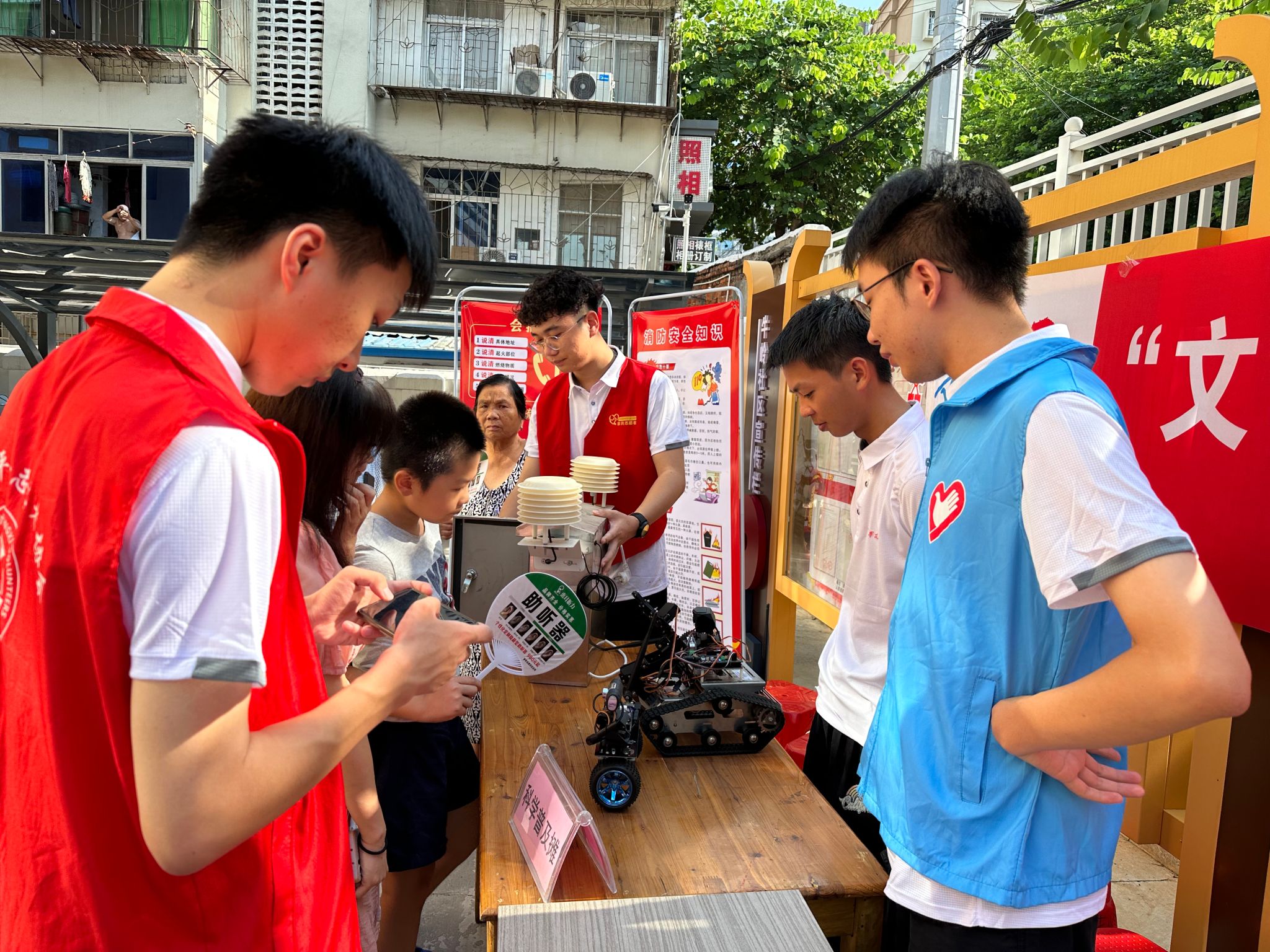 本网讯:科技惠民,在社区“沉浸式”体验科技魅力。8月3日,欧冠联赛官网信息工程系“三信实践队”加入牛岭社区文明集市,以社区“摆摊”群众“赶集”的形式,面向社区居民举办电子科技展览,丰富公众文化生活,传播新时代文明实践正能量。