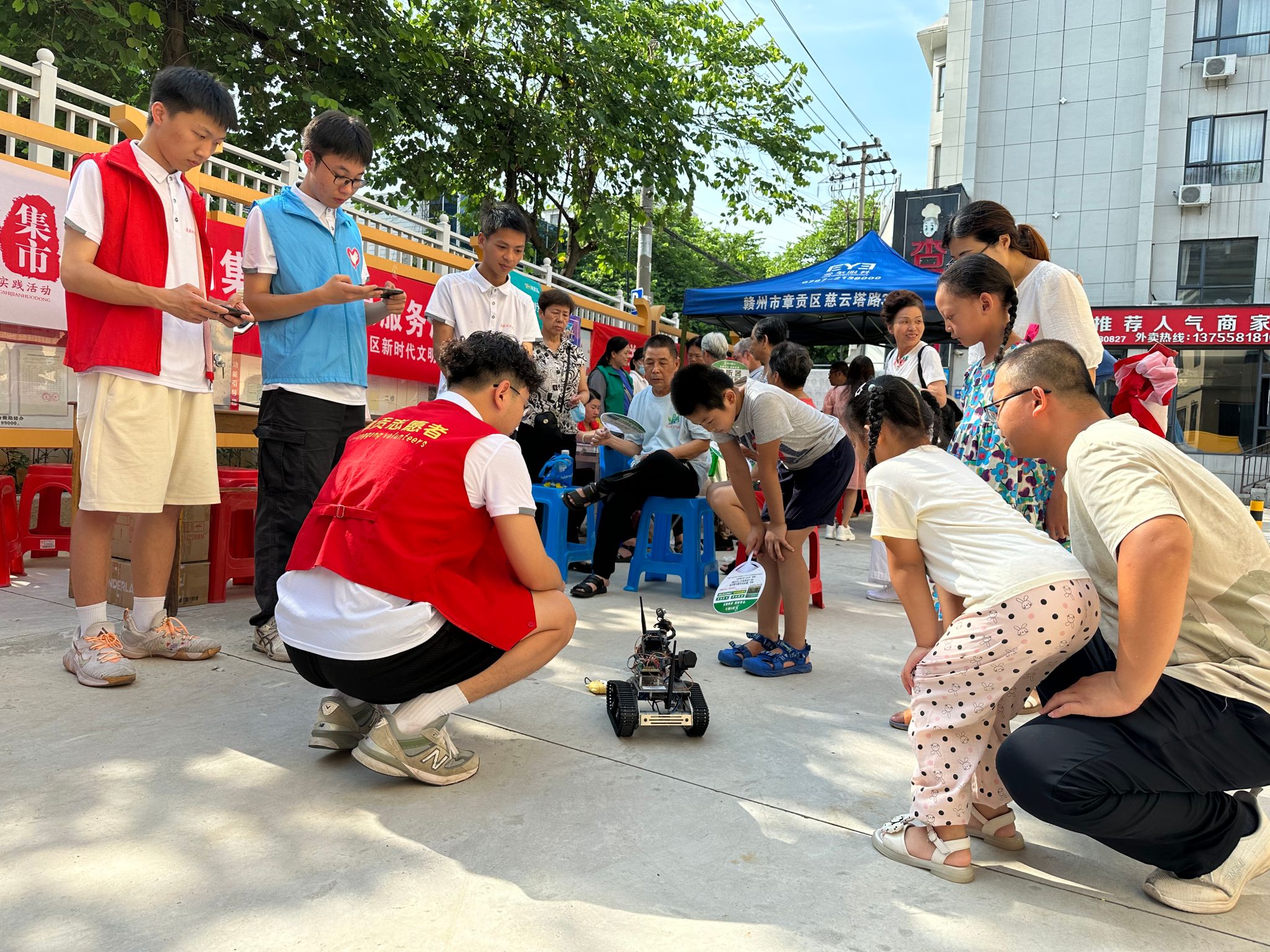 活动现场,电子科技展台上共展示了小型智能汽车、空气质量检测仪等5件科技作品,通过观摩实物、操作体验等方式,吸引众多社区群众驻足停留。志愿者们手把手指导小朋友们如何现场控制智能车,为喜欢汽车模型的孩子们普及丰富的制动器的相关知识,大家边学边提问,现场气氛十分热闹。