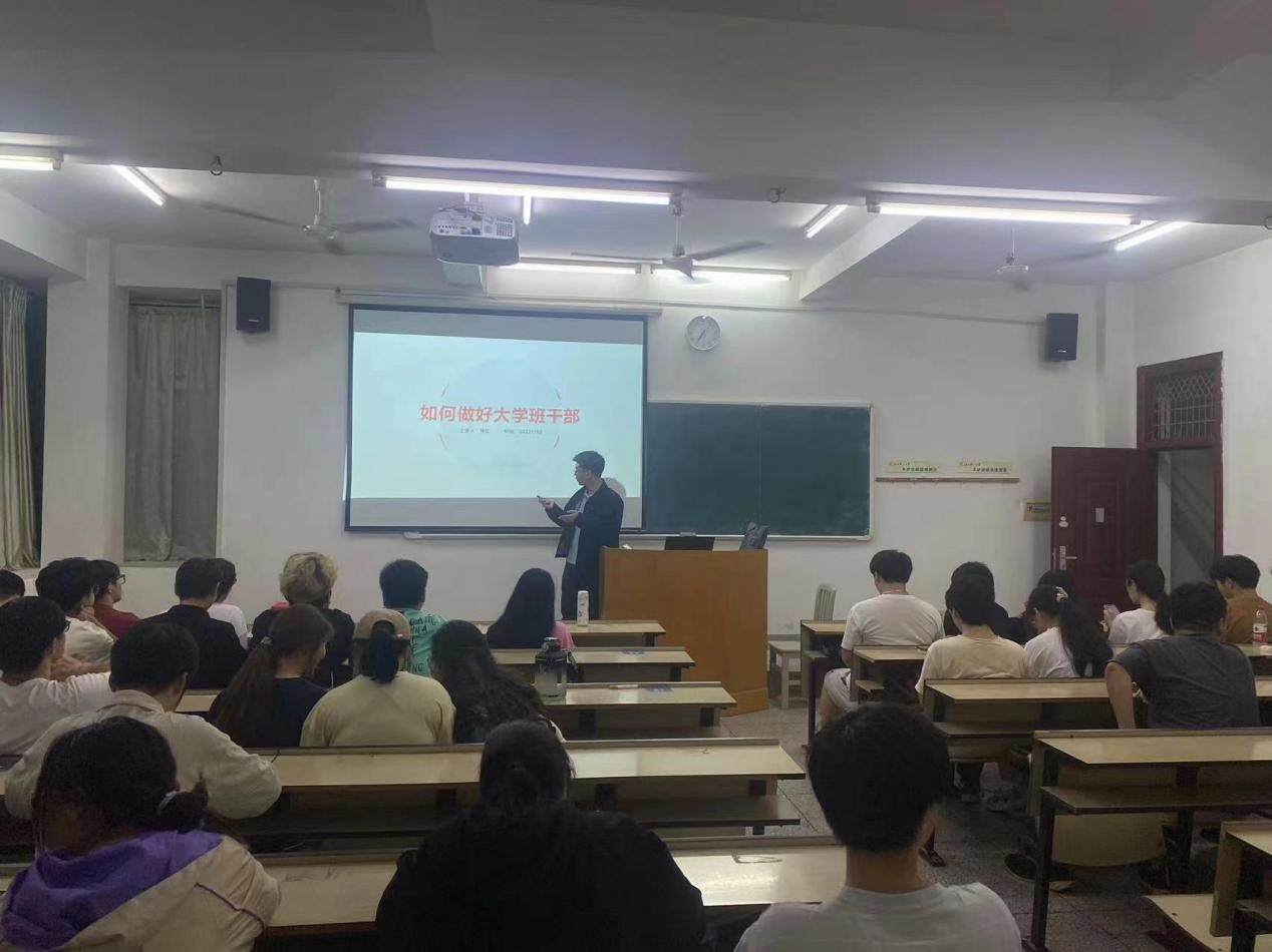 培训会上,钟正围绕“大学班干部的角色与职责、班干部的素养和能力要求、班干部的领导技巧和沟通方法、班干部的时间管理与压力缓解、班干部的团队建设与活动组织、班干部的常见问题与解决策略”六个方面讲授如何做好一名大学班干部。