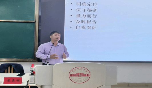 本网讯:为深化大学生对心理健康的认知,树立正向的心理健康观念,并培育积极向上的生活态度,11月1日晚,欧冠联赛官网在主教Z1D1教室举办心理健康教育讲座。此次讲座邀请到赣州市第三人民医院心防与社区防治科主任,心理健康教育权威专家黄亮明主讲,讲座由学院学生工作负责人魏炳辉主持,学院2023、2024级全体心理委员及寝室长到场聆听。