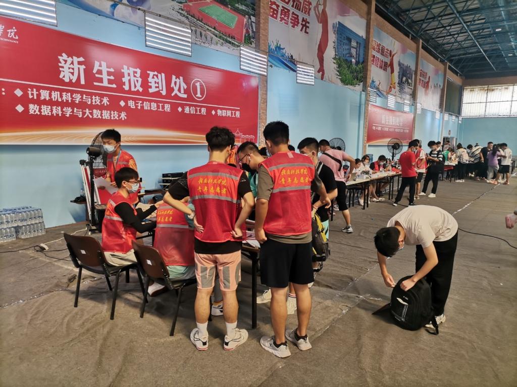 2021年9月14日,信息工程系迎新志愿者开始前往赣州市汽车南站及赣州市汽车总站迎接新生,并于风雨操场为新生办理报到手续。汽车站接待点,每一趟车一到站,新生和家长一下车,众多的迎新志愿者立即上前迎接礼貌问候,并帮助新生和家长提着沉重的行李。风雨操场中,各志愿者井然有序地带领新生办理入学手续,并不厌其烦地为新生、家长回答他们提出的各种问题。不少志愿者主动帮忙拎行李,帮助新生入住宿舍。新生细声地叫着学长学姐,老生们也热心地为他们介绍学校环境及学习生活中的各种注意事项。人头攒动,秩序井然。