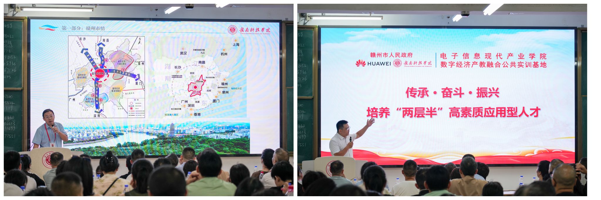 会上,学院党委副书记邓小鸿首先代表学院对各位家长的到来表示热烈欢迎,并详细介绍了赣州市悠久的历史文化、蓬勃的发展态势以及优越的区位优势,帮助家长们对孩子未来四年的生活环境建立初步认知。随后,他深情回顾了学校与学院的办学历史、学科建设、师资力量、人才培养及办学成就,让家长们对学院的办学实力和育人水平有了全面而深入的了解。随后,现代教育技术中心副主任、华为电子信息现代产业学院执行院长谢小云从产业学院的成立背景、培养目标、课程体系、实践教学、校企合作以及就业前景等方面进行了详细阐述,强调了产教融合、协同育人在培养高素质应用型人才中的重要作用,让家长们对孩子未来的专业发展和职业规划充满了信心。
