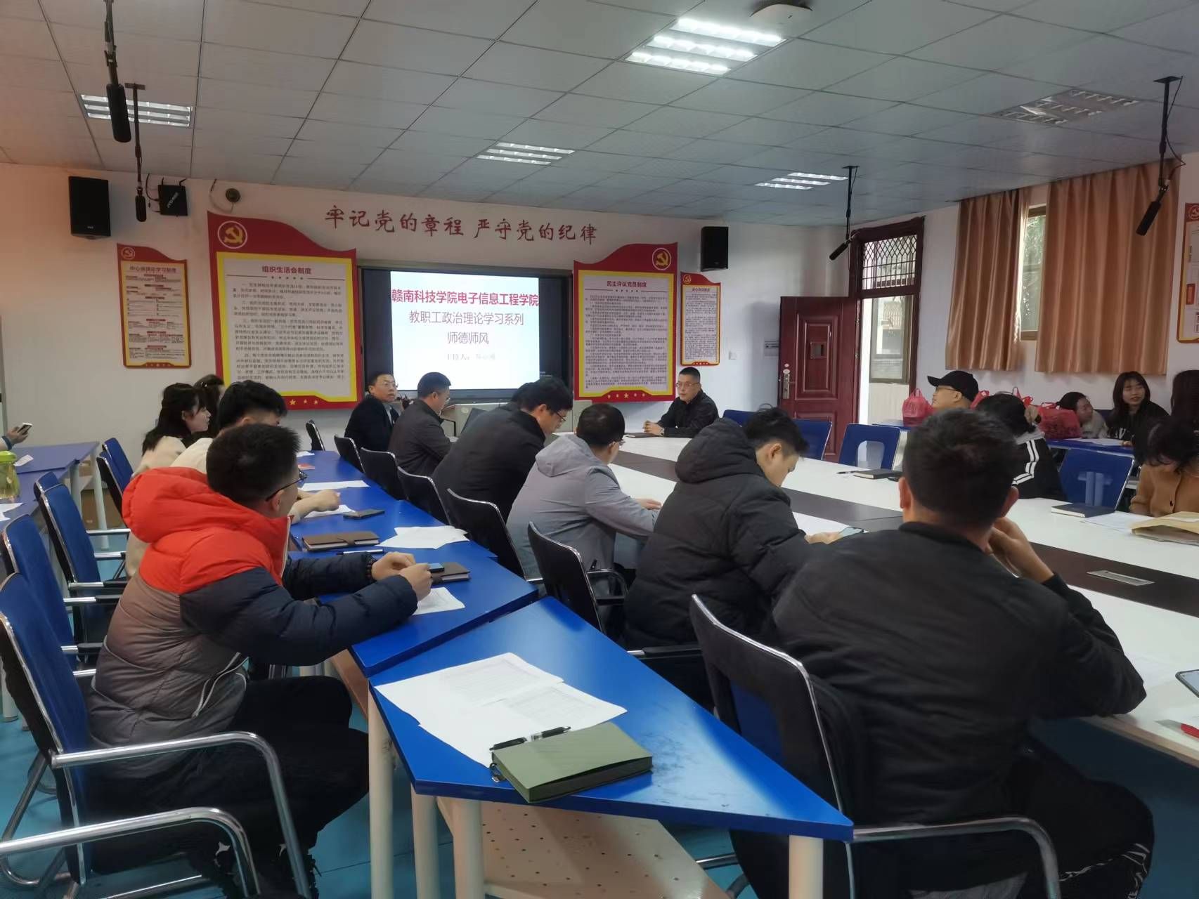 本网讯:为持续深化师德师风建设,进一步提升教职工思想政治素质。2月21日,信息工程系召开教职工思想政治理论学习专题会,会议由系党总支书记邓小鸿主持,信息工程系全体教职工参加了会议。