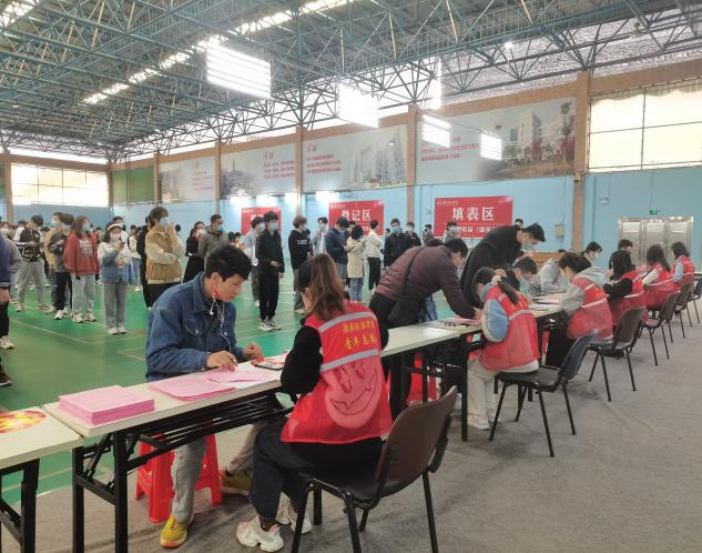 本网讯:2022年4月2日上午9点,信息工程系本科生党支部组织支部30名入党积极分子于学校风雨操场疫苗接种点,协助医护人员进行疫苗接种。