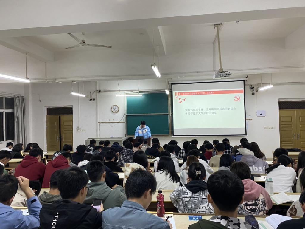 此次主题党日活动主要内容如下,全体同学共同观看十九届六中全会的相关视频,了解全会的重要内容。随后由党支部成员发展对象吴梦婷、董慧玲同志讲述党史故事,接着预备党员王宇轩、王红梅同志,与通信21级全体同学分享大学生活。最后,通信新生代表于璐泽、张嘉乔、刘畅、闵晨彪等分别用歌唱、微团课和朗诵,回顾百年党史,展望下一个百年。