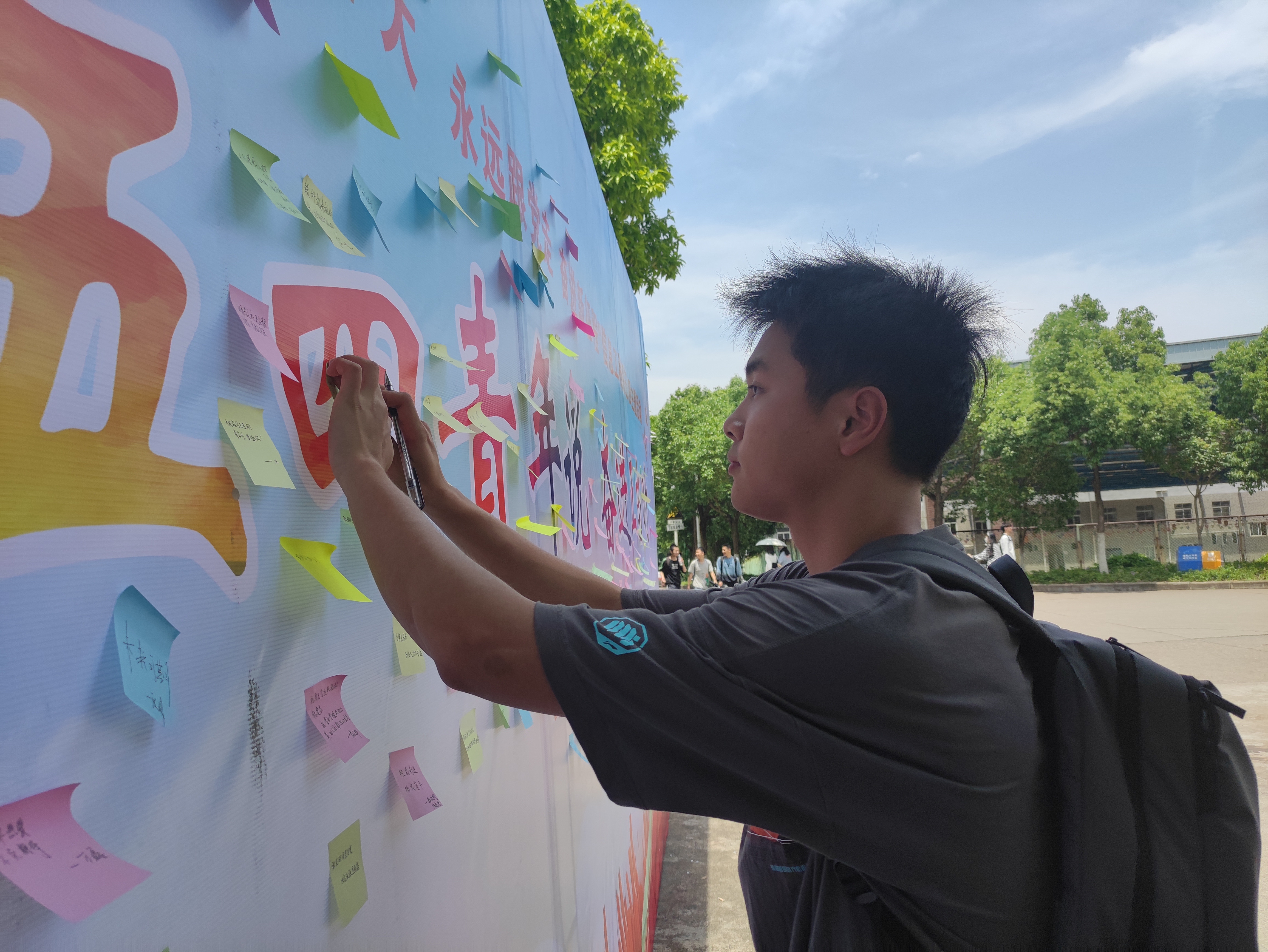同时,在学校图案书馆前设置签名墙、合影墙,让每一位路过的同学都可以拿起画笔填充图片墙,留下写上自己祝福的便利贴。“青年说”板块中,信息青年纷纷利用下课的空闲时间,相约来到留言墙前领取便签,于身自省,思考自己的青春命题,以文字的形式记录下独特的青春感言,将写有青春感悟的便签贴在留言墙上,将文字汇集成一面美丽的青春之幕。并在“拍照墙”前与好友留下影像,展现青春风采,喜迎五四。