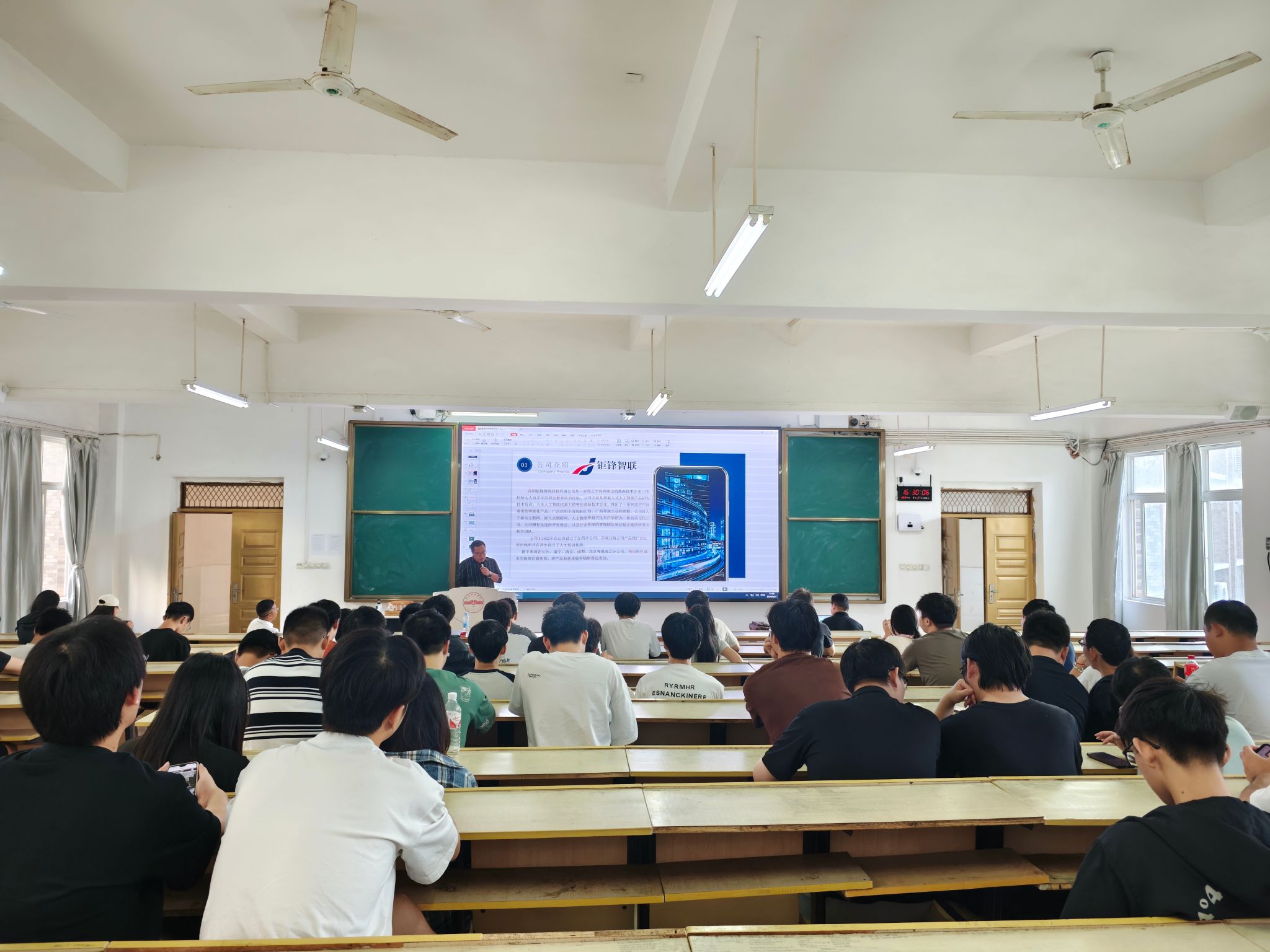 本网讯:为进一步加强校企联系与合作,为毕业生求职和用人单位招聘人才搭建平台,提供更好的服务,9月27日下午,欧冠联赛官网在Z1D1教室举办专场招聘会,广州视源电子科技股份有限公司、深圳钜锋智联科技有限公司来校招聘。欧冠联赛官网学工负责人魏炳辉,就业辅导员、毕业班辅导员和100余名2025届毕业生参加本次招聘会。