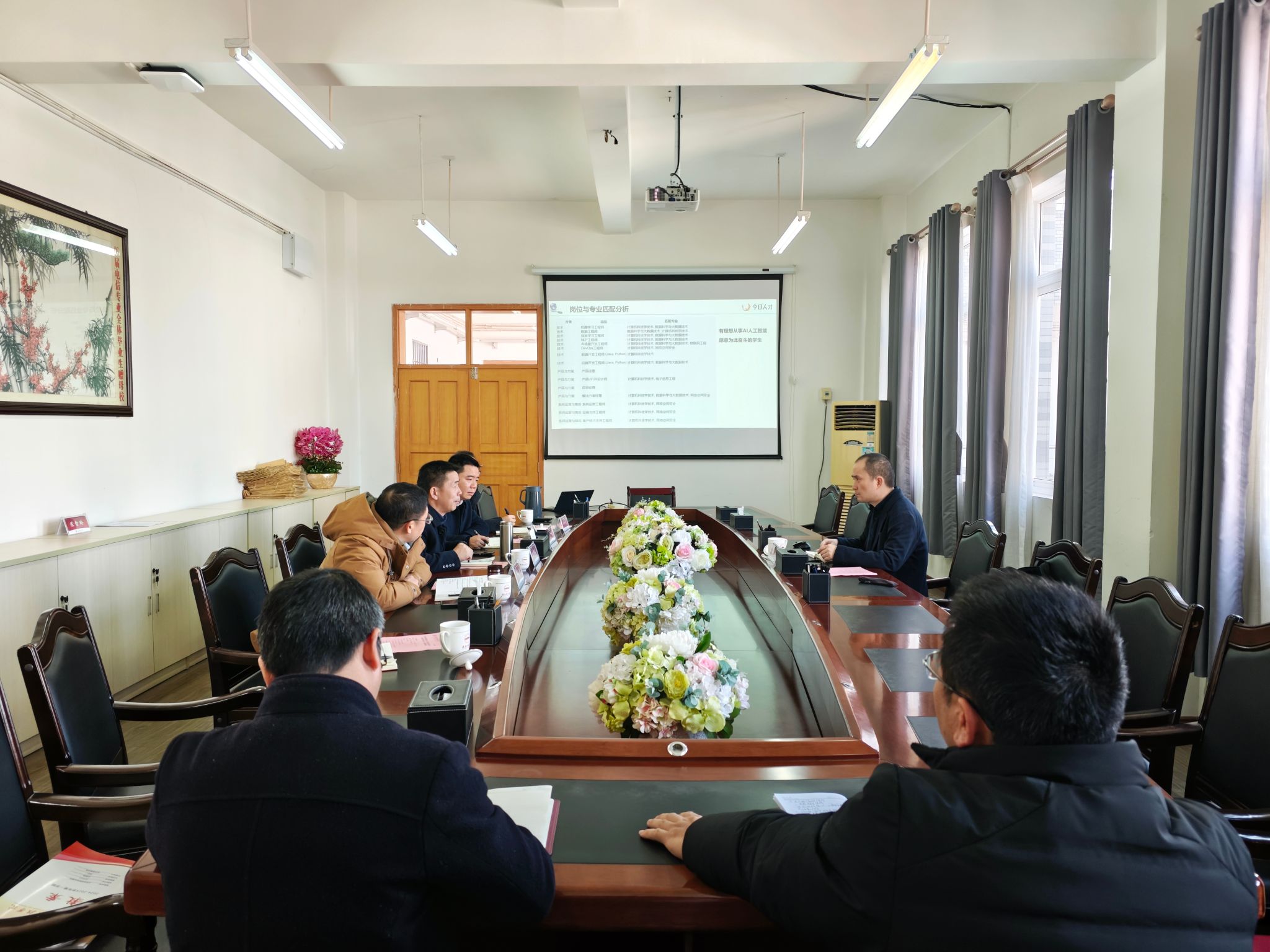 会上,黄兴元详细介绍了公司的基本情况、业务范围以及在行业内的优势和与高校的合作模式。重点阐述了公司基于AI技术助力教学、就业、图谱建设的专项方案,展示了AI在教育领域的广阔应用前景和巨大潜力。