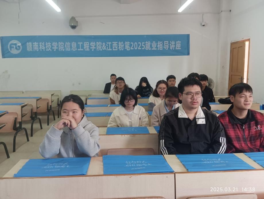 本次讲座邀请到北京粉笔天下教育科技有限公司南昌分公司资深讲师曾良平主讲,围绕2025年就业形势分析、考公、考研及直接就业三大出路展开分析,并结合当前就业市场数据,详细讲解了各类职业选择的优劣势,鼓励学生综合考虑自身兴趣、职业目标及社会需求,做出理性选择。