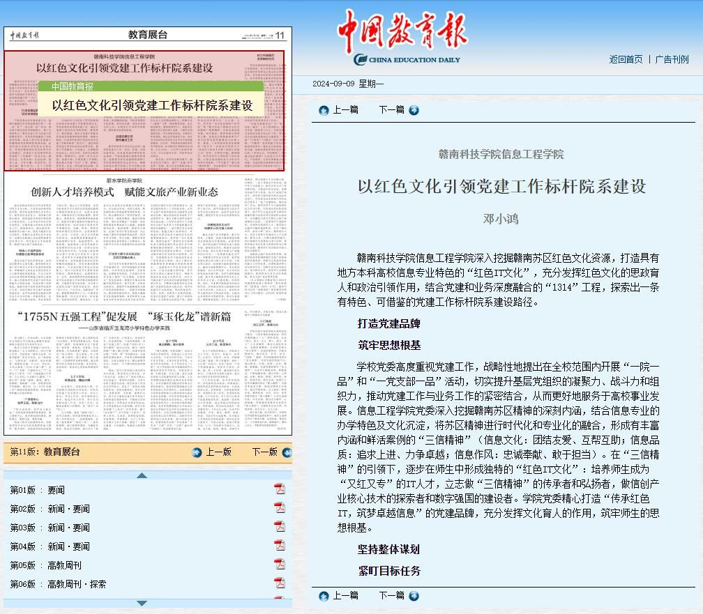 本网讯:9月9日,《中国教育报》第11版“教育展台”栏目刊发了欧冠官网欧冠联赛官网党委副书记邓小鸿题为《以红色文化引领党建工作标杆院系建设》的文章,对欧冠联赛官网党建工作标杆院系建设做法进行总结介绍。文章链接:http://paper.jyb.cn/zgjyb/html/2024-09/09/content_144750_17792676.htm。