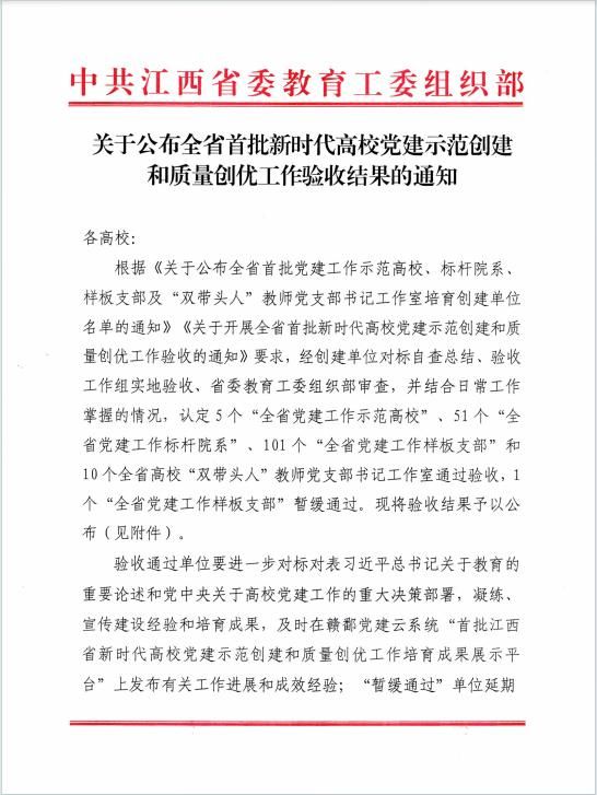 ​欧冠联赛官网党委顺利通过江西省首批“全省党建工作标杆院系”验收