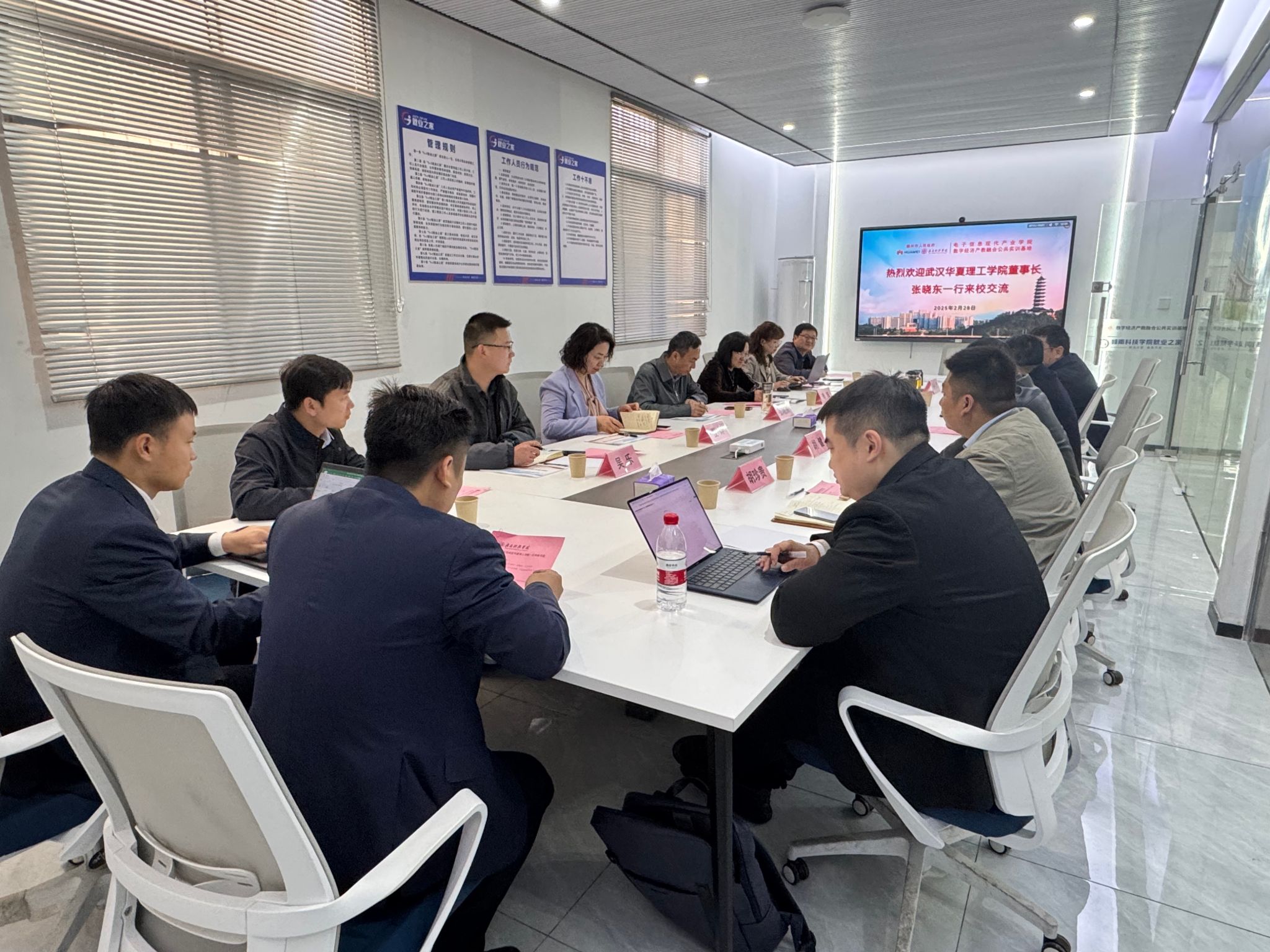随后,双方移步产业学院会议室S127展开座谈。何锦龙代表学校对武汉华夏理工学院一行的到来表示热烈欢迎,并详细介绍了学校的办学情况和办学成果;张晓东对欧冠联赛官网的热情接待表示感谢,他表示,欧冠联赛官网产业学院的办学实践“具有示范意义”,尤其在实训基地建设与产业对接方面值得借鉴,期待未来两校在师资共享、课程共建等领域开展实质性合作。